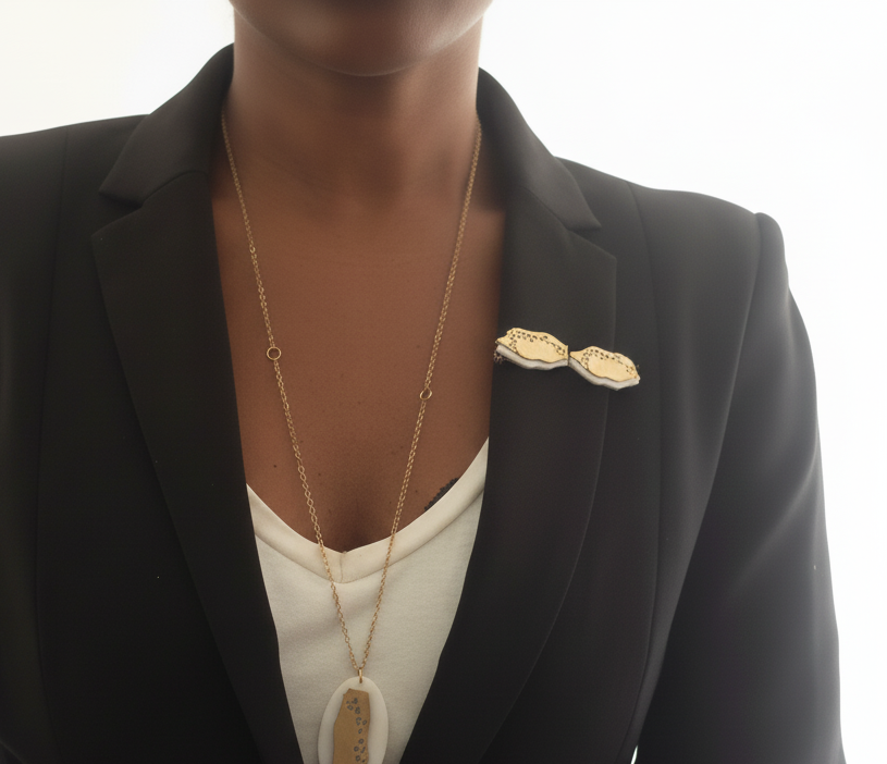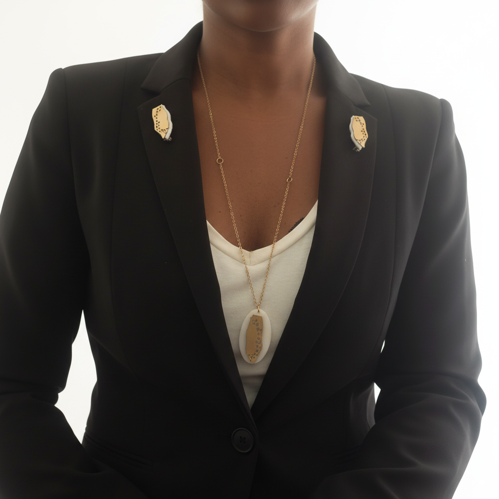 Synergy: The brooches and pendant echo each other in rhythm and form—a wearable expression of resilience and rise.